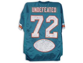 The jersey is personally hand signed by approximately 40 players and coaches from this legendary team. These include all seven of the hall of famers. Don Shula, Bob Griese, Nick Buoniconti, Larry Csonka, Larry Little, Jim Langer and Paul Warfield. Plus others such as: Jim Dunaway, Jesse Powell, Maulty Moore, Doug Crusan, Charles Leigh, Bill Stanfill, Manny Fernandez, Bob Heinz, Vern Den Hereder, Lloyd Mumphord, Alfred Jenkins, Bob Kuechenberg, Tim Foley, Otto Stowe, James Delgaizo, Jim Kiick, Mercury Morris, Marlin Briscoe, Dick Anderson, Doug Swift, Norm Evans, Charles Babb, Howard Twilley, Hubert Ginn, Terry Cole, Jim "Mad Dog" Mandich, Larry Ball, Mike Kindig, Karl Noonan, Mike Howell, Earl Morrall, Garo Yepremian, Marv Fleming, Mike Kolen, Curtis Johnson, Larry Seiple, Jim Riley, Ed Jenkins and Greg Johnson. Limited Edition of 272. Certificate of authenticity is included.