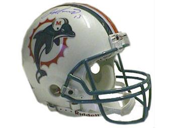 Miami Dolphins football helmet autographed by Dan Marino, Future Hall of Famer.