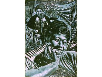 Ella Fitzgerald known as the "First Lady of Jazz" is captured beautifully in this black and white print. This 18" x 24 " print was created by local artist Art Palmer.