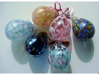 With kaleidoscopic color and radiant refractions of light, these hand-blown glass ornaments by John and Jennie Elias create bidding excitement every year. Use them for unique, eye-catching holiday decorations, or enjoy the 'light' show all year round!