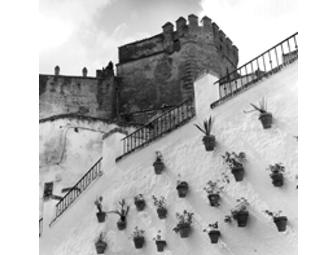 Shot in Arcos de la Frontera, Spain, Spanish Garden provides an elegant answer to the urban gardener's growing-space dilemma. The photograph's 'angle of repose' is engaging indeed, especially crowned with the turrets of a Spanish castle. This black & white photograph measures 13"(h) x 14"(w) in a black metal frame under glass. (image size: 8" x 8")