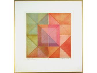 Artist/printmaker Mildred Smith finds endless fascination in the infinite configurations of color. In Indian Summer she delights us with abstract, textured and geometric shapes in tones of orange, gold and green -- the subtle, vanishing hues of a cherished Indian Summer.