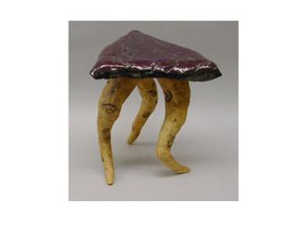 "I bow to the Divine within you. With reverent respect I notice you...We are one. We belong together." Fazzino's funky and functional stoneware clay ceramic table/ stool wants to find a place of honor in your garden. It measures 14"(h) x14"(w) x18(d)".
