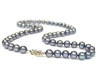 Classic black pearls make a lovely gift. This lustrous strand features 6.5-7 millimeter Grade AA cultured freshwater pearls in colors that range from a bluish black to a peacock green. It's enhanced with a 14-karat yellow gold fishhook clasp.
