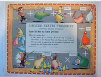 Al Capp illustrated U.S. Treasury Savings Bond Division certificate. Blank form, no redeemable value.