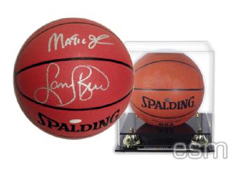 Magic Johnson & Larry Bird Dual Signed Basketball in Display Case