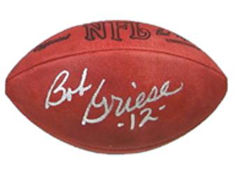 This is a hand signed official NFL football signed by Dolphins All-Pro Quarterback & NFL Hall of Famer Bob Griese. Bob quarterbacked the Dolphins to a perfect season 17-0 in 1972. The football is an official ball identical to the one used in NFL games.