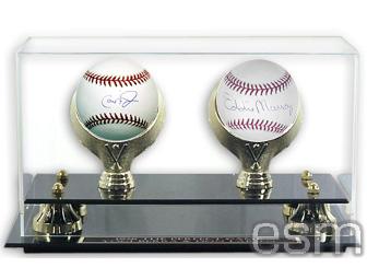 These two official Major League Baseballs are hand signed by both Eddie Murray and Cal Ripken. Included with this item is a Double Golden Ring Acrylic Display Case. Item includes a Certificate of Authenticity.