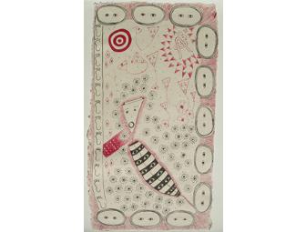Inspired by her frequent travels to Peru, Mexico, Cuba and Spain, the imagery in Nancy Aleo's Black and Red Barcelona Series:I is born of a subconscious blending of her dreams, reflections and recollections. The piece is drawn with black sumi ink and red cochineal ink on handmade Oaxacan paper. The materials have ancient origins with the Mayas of Mexico, who first painted their sacred codices with the cochineal ink derived from the cochineal beetle.