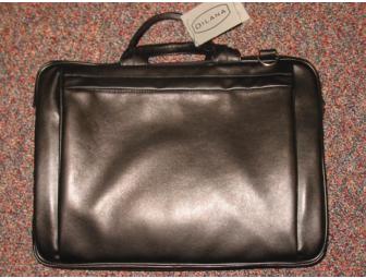 Made of buttery-soft, black leather, this high quality briefcase can either be carried by hand or with a detatchable shoulder strap.