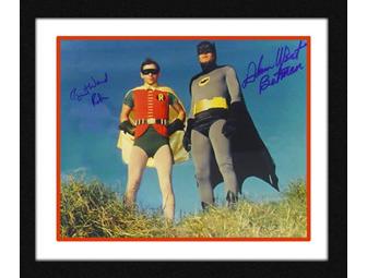 This is a vintage 11x14 photograph from the original Batman television show hand-signed by Adam West (Batman) & Burt Ward (Robin). It is professionally matted and beautifully framed in a black wood frame.