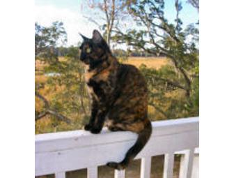 "This precious tortie was found three years ago with eight littermates wandering a rural road. All were emaciated with burned paw pads from the hot highway. I chose this one because of her cute, orange-dappled left ear. I named her Sonsy, a Scottish word for health and robustness, a name she could--and has--grown into. She's funny, curious beyond belief, soft as velvet and is this love of my life." - Rosemary Browne
