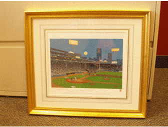 "Fenway Park" was printed using Iris Giclee technology from the original oil painting maintained in the private collection of the boston Red Sox Organization. The matting is an archival hand painted French watercolor mat. The painting was commissioned in 1999 and depicts a typical home game at old Fenway. This image is extremely limited in production and is not available to the public. Accordingly, the image is highly collectable and quite valuable. This style of painting is typical of the Boston School of Impressionism.