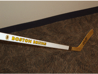 A Boston Bruins hockey stick autographed by hockey legend Ray Bourque.