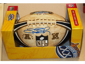 A commemorative SuperBowl XXXIX Championship football autographed by SuperBowl 39 MVP Deion Branch.