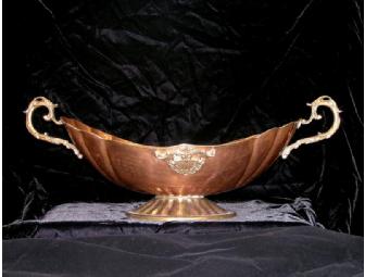 This 18" x 12" hammered cooper centerpiece will make a nice addition to anyone's table. A great piece for seasonal decorations.