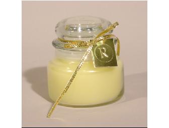 Candles by Robb. They come in an attractive jar with lid. Candles and wicks are 100% lead free. They are 12 ounces weight and have 55 to 65 hours burning duration.
