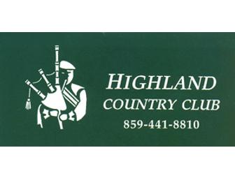 Highland Country Club is an established, private country club in the hills of Northern Kentucky. Take advantage of this gift certificate and enjoy an 18 hole round of golf with 3 of your friends. Cart included. Please dress in golf attire.