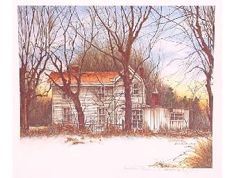 Measuring 12 1/2" by 10", this signed print is a reminder of the harsh realities of winter. The bare trees and the snow-covered ground give you a taste of the season. #305/500, it is double signed by the artist. Ready for a mat and frame. The original is pen and ink and watercolors.