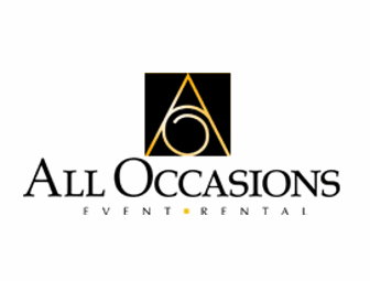 All Occasions Events Rental is a complete rental center carrying everything from tents and canopies to china and crystal, with the largest selection of linens and specialty cloths in the area. The Event Design Department can create the perfect mood for your affair with centerpices, specialty lighting and decor. Grab this gift certificate and start partying!