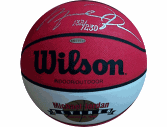 Special red basketball to commemorate Michael Jordan's retirement. Hand- Signed by Michael in silver and limited to 230. Certificate of Authenticity from Upper Deck Authenticated.