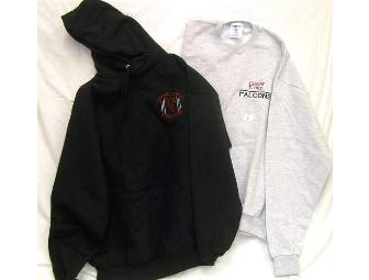 Show your school spirit in these size large grey DC sweatshirt and large black DC hoodie. Go Falcons!