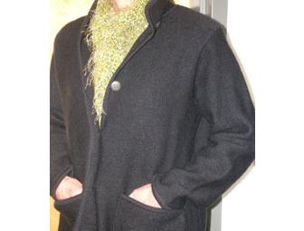 This L.L. Bean jacket has a stand-up collar and a longer length, falling below the hip. Two pockets and silver buttons. Size small. (Scarf sold separately.)