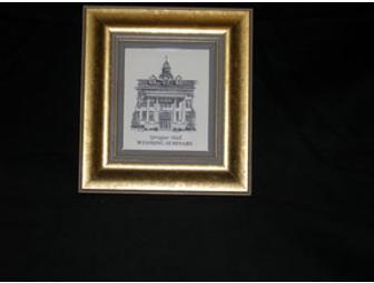 Commissioned for Wyoming Seminary's Sesquicentennial in 1994, Eglomise Designs created this 4 by 4.5 inch gold framed print of Sprague Hall, built in 1926.