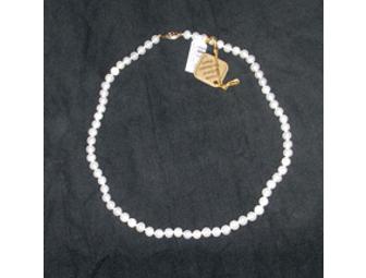 An 18 inch pearl necklace with 6-6.5 mm cultured freshwater pearls and a 14k gold clasp.