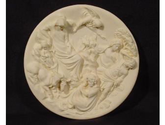 Lorenzi Ghiberti created the North Doors of the Florence Baptistery in the early 15th century. Master sculptor Alberto Santangela has recreated the tenth panel from Ghibertis North Doors in the medium of ivory alabaster. Hand cast and finished in Tuscany, Italy, the plate measures 8 1/2" in diameter. It comes with a certificate of authenticity, along with background information from an art critic from Italy.