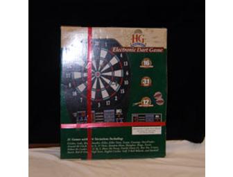 Up to 16 players can play 31 electronic games including darts, cricket, ludo, snooker, scram, bingo, Shanghai and baseball. Illuminated cricket score board for score, no score and cut-throat cricket.