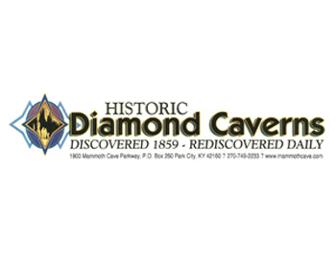 On the way to Mammoth Cave national park, is Kentuckys most beautiful cave. Historic Diamond Caverns features intricate drapery deposits lininh yhr halls in cascades of naturally colorful calcite. This ticket is a family/friend pass for 4. Open year around, the cave is closed Thanksgiving, Christmas and New Year. The caves temperature is 58 degrees and the tour length is 1/2 mile, a moderately strenuous tour with 300 plus steps (no more than 50 at a time). Ticket may not be redeemed for cash.