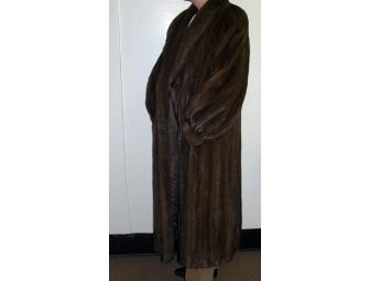 A demi-buff female mink coat with shawl collar and bracelet cuffs. Size 10-12. "As new" condition.