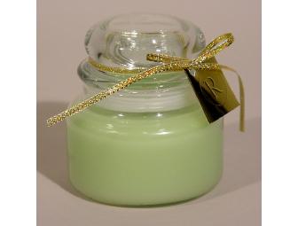 Candles by Robb. They come in an attractive jar with lid. Candles and wicks are 100% lead free. They are 12 ounces weight and have 55 to 65 hours burning duration.