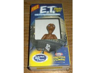 Remember E.T.? Remember loving Kraft Macaroni & Cheese? This collectible bendable E.T. figure is still in the original box it came in, when Kraft issued it in 2002. The box has instructions for cutting it so the E.T. figure looks like it's taking the kid Elliott for a ride.