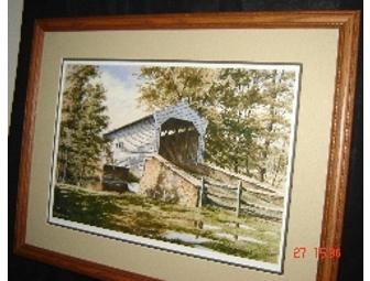 Covered Bridge Oil Painting - Framed