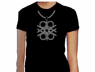 This T-Shirt, donated by Jewish rap parody artist Eric Schwartz, declares on the back "Oy is Yo Backwards". On the front, the symbol around the neck is "O"s and "Y"s connecting to make a Jewish star. Women's baby T-shirt is size Medium and printed on a high-quality, Gildan-brand shirt. Perfect for temple.