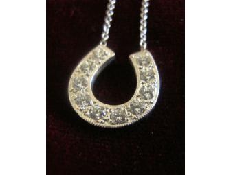 Diamond Horseshoe necklace from Mia & Kompany, the Jeweler to the stars. This is a 14K white gold necklace with diamonds embedded in the horseshoe pendant. This is the famous necklace worn by Sarah Jessica Parker in Sex and the City -- not a knock-off, this is the real deal direct from the jeweler who supplied Ms. Parker.