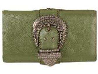 New for 2006. Get in touch with your inner rhinestone cowgirl! Charm & Luck clutch/wallet with bling crystal buckle in apple green. The perfect leather evening clutch/wallet... fits a small cell phone and lipstick for a night out, or use it as a wallet inside your bag.