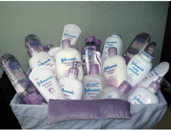 Johnson and Johnson lavender gift basket is filled with soothing lavender and chamomile scented products to help relax and calm you and your baby before bedtime. The products in the basket include: Bedtime Lotion, Baby Powder, Baby Oil Gel, Baby Oil, Bedtime Bath, Bedtime Cream Wash, Bedtime Cream and Baby Shampoo, in addition to lavender bath sheet and silk-lined lavender eye pillow. These products will help provide you and your baby the relaxation needed for a good night's sleep.