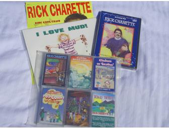 Six cassettes: Where Do My Sneakers Go at Night, A Little Peace & Quiet, Chix on Vac., Popcorn, Christmas Tree and Toad Motel, 1 book - I Love Mud and 1 DVD of Rick's songs and stories.