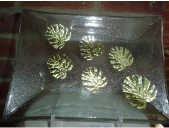 Hand made Oro Folio glass serving dish, 7 1/2" x 10",has beautiful gold leaves embedded into the dish.