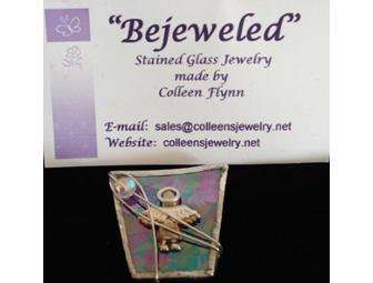 Stained glass pin featuring an angel design, handmade by Colleen Flynn