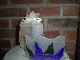 Kiln fired glass votive candle holder made by Marianne Shepardson, owner and designer at Shepardson Studios.