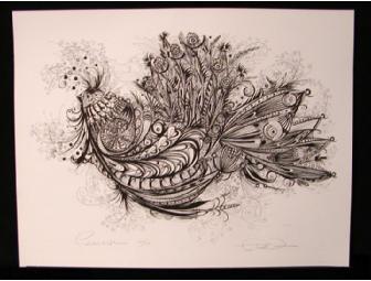 Limited edition lithograph "Peacock" by Mr. Carmine DeVivi. Numbered 107 out of 300. Signed and numbered by Artist. Print measures approximately 26 x 20 inches and is UNFRAMED.