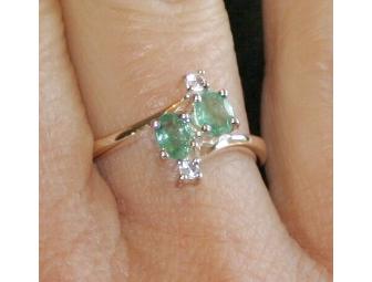 Lovely ladies green topaz with diamonds sterling silver ladies ring - size 7 -would make a nice pinkey ring.