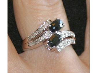 Beautiful 10K White Gold Ladies ring with geniune diamonds and sapphires. Size 7. This ring would make any mother happy on Mother's Day