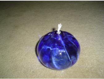 Handblown art glass oil lamp by Ray Matthews, Jr. Signed by artist