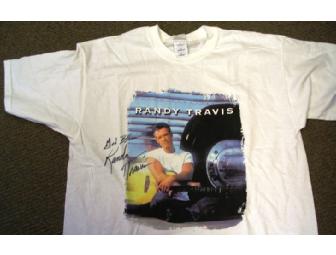 One of the BEST country singers of ALL TIME - Randy Travis! Bid on an autographed t-shirt of Randy Travis. It says "Thanks God Bless" and has signature. T-shirt is white size X-LARGE and has picture on front of Randy Travis and "Passing Through" tour locations on back.