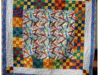 Beautiful hand patched, machine quilted baby quilt. It is 36" square in vibrant primary colors.